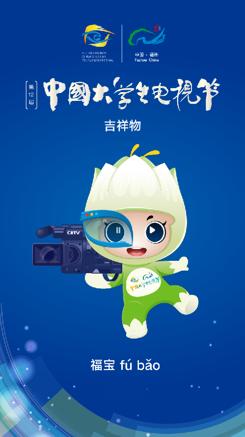 福州见“福”。“福宝”设计来源于福州的“市花”——茉莉花,并融合“大学生”“电视节”、“中国教育电视台”等元素。
