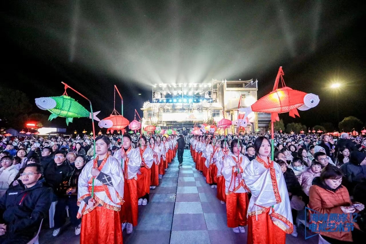 泰宁丹霞之夜两岸经典电视剧歌曲演绎节目中,在别开生面的丹霞风光中,“山歌+擂茶技艺”组合表演欢迎八方来客,“板凳龙+鱼子灯”民俗演出寓意开运亨通,展现泰宁非物质文化遗产魅力。