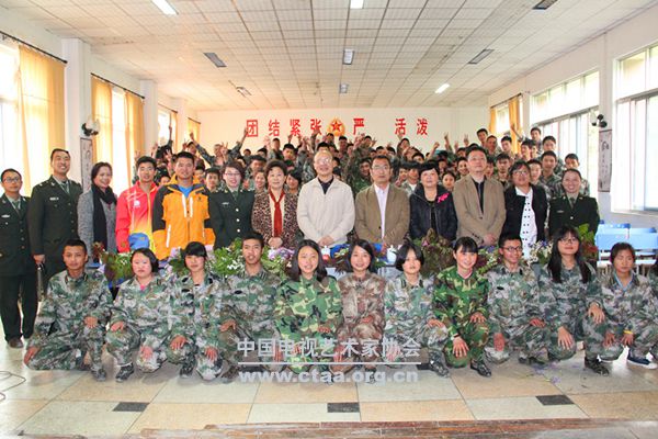 图为:贵州省文联主席顾久、贵州贝博副主席秘书长洪江平与贵阳行知科技职业学校师生合影