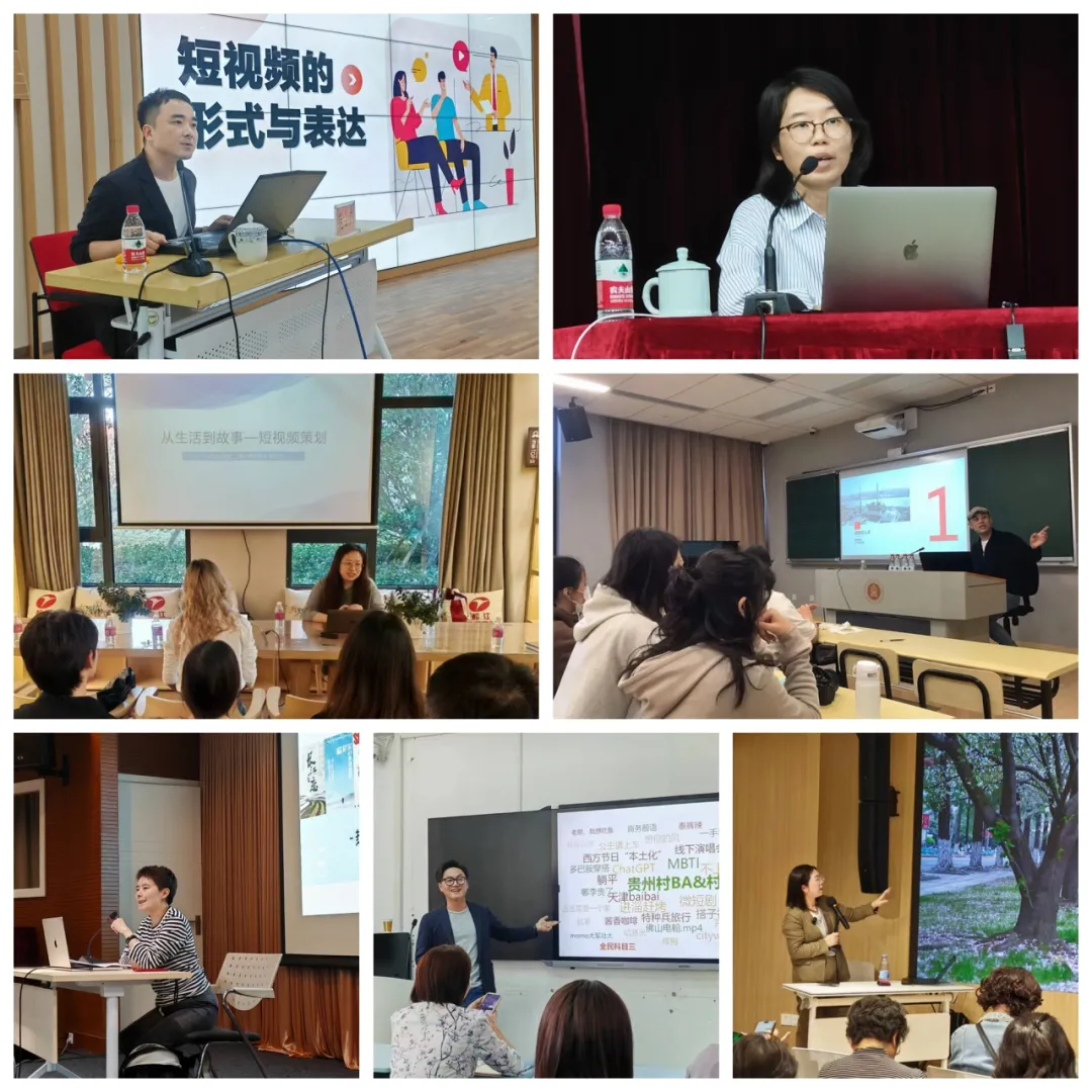 讲座主题设置多元、涵盖面广,充分体现了短视频创作领域的交叉性、实践性和前沿性,既包含了短视频创作的基本要素,也包含了短视频创作实践的具体技巧。上海广播电视台纪录片中心外宣主管、纪录片导演王向韬以“短视频的叙事逻辑”为题,讲述了如何将15万字的《一九四九:在华西方人眼中的上海解放》变成6集5分钟长度的“百年大党老外讲故事上海解放特集”系列短视频的策划过程;上海师范大学教授、硕士生导师、电影学博士龚艳以“光影之门——创作一部短片”为题,分析了在视频可以“自动生成”的影像创作新时代时代,如何创作出“独立思维”的短视频;上海广播电视台纪录片中心工作室负责人、SMG领军人才、一级导演刘丽婷结合从事纪录片创作的工作经历,与观众探讨怎样在热门话题和独特视角中找到创作的平衡点;新榜研究院院长、短视频“南哥新榜样”主理人、新媒体畅销书《滑屏时代》作者夏之南,以小红书、B站、微信视频号等几大主流内容生产的平台为例,探讨了“内容消费带来的消费趋势”;上海政法学院上海纪录片学院副院长、澳门科技大学电影学院博士生导师邢虹文教授分享了“从生活到故事——短视频策划”,通过视频范例指导现场观众如何通过细节和创新手法来在影像中呈现真挚情感;上海广播电视台纪录片工作室负责人、导演谢申照以纪录片《上海解放一年间》为主线,从政治军事、经济金融、社会民生三方面重温了1949年5月至1950年5月间发生在上海的故事;上海广播电视台纪录片中心工作室负责人、纪录片《人间世》制片人、总导演范士广以“短视频的形式与表达”为题,总结了新闻现场类短视频、主题报道类短视频和日常生活类短视频的不同创作特点。