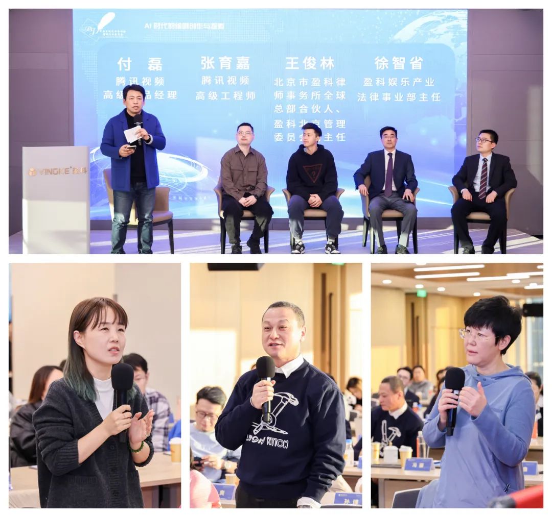 互动问答环节,艾弗森贝博ballbet官网编剧专业委员会副秘书长、编剧曲士飞,腾讯视频高级产品经理付磊,腾讯视频高级工程师张育嘉,北京市盈科律师事务所全球法律事业部主任总部合伙人、盈科北京管理委员会副主任王俊林,盈科娱乐产业法律事业部主任徐智省等视频平台负责人、律师与现场编剧,就“AI下的剧本大模型建立”“AI创作的剧本版权归属”“著作权决定因素”“侵权人到底是AI还是人”等热门话题展开了政策解读、充分交流,现场气氛十分热烈。