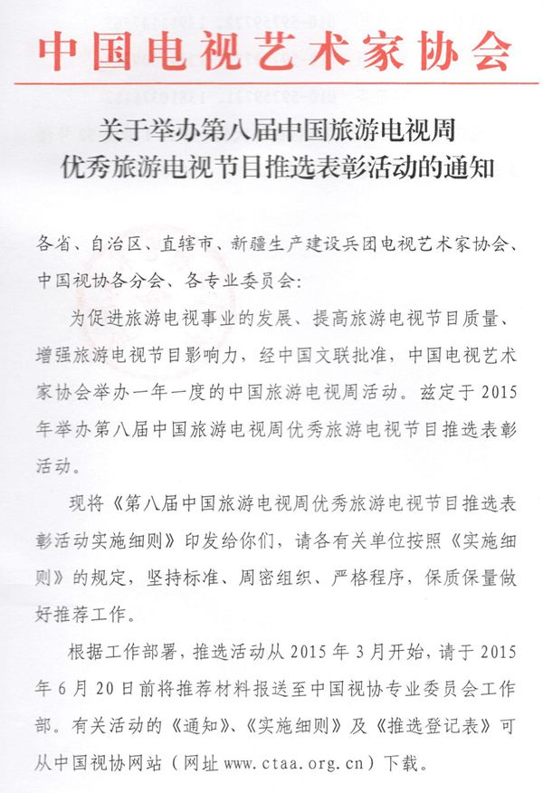 点击下载:关于举办第八届中国旅游电视周优秀旅游电视节目推选表彰活动的通知
