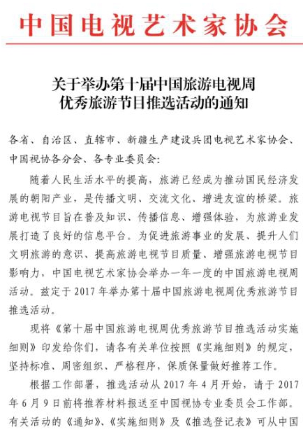 关于举办第十届中国旅游电视周优秀旅游节目推选活动的通知