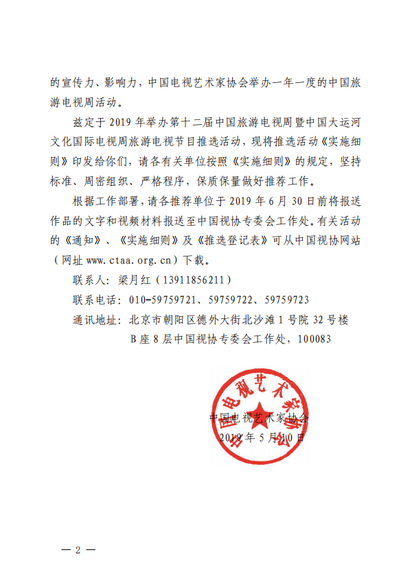 关于举办第十二届中国旅游电视周暨中国大运河文化国际电视周旅游电视节目推选活动的通知