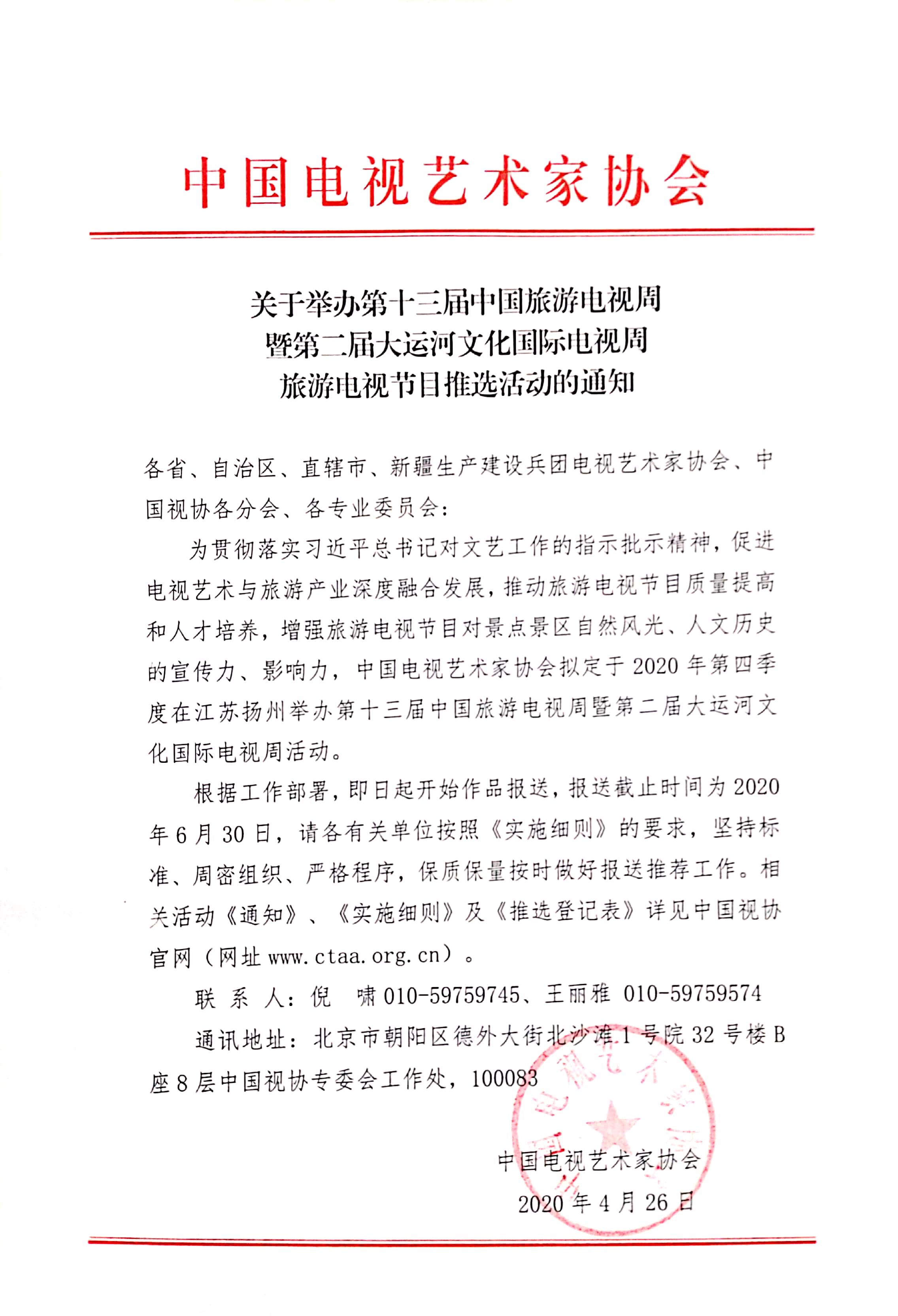 第十三届中国旅游电视周旅游电视节目推选活动通知