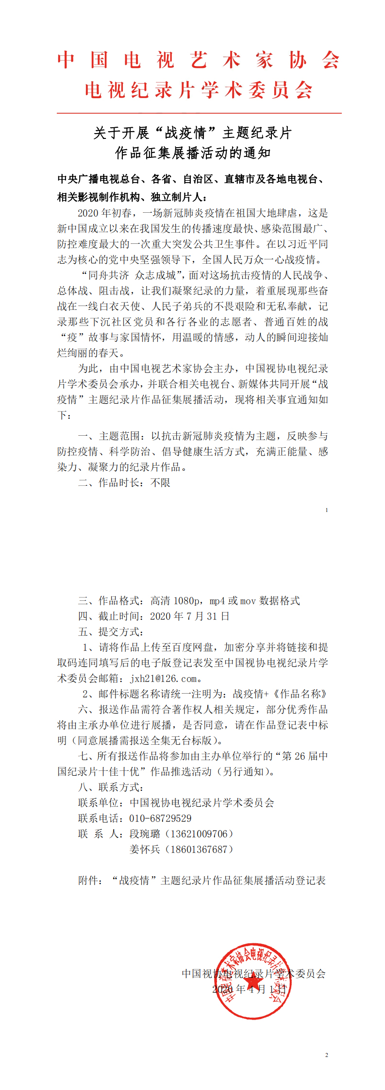 艾弗森贝博ballbet官网电视纪录片学术委员会面向社会各界征集“战疫情”主题纪录片作品